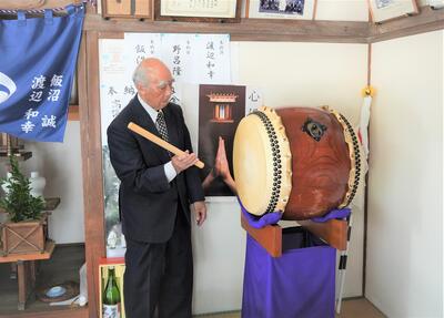 陣屋の面影を今に伝えるのが、八坂神社に所蔵され、このたび市の指定文化財に指定された"御陣屋太鼓"。飯沼さんは、唯一江戸時代から残っているこの太鼓を文化遺産として保存・伝承する活動にも精力的で、顧問を務める「御陣屋太鼓を守る会」は、約40年間にわたり地域の行事やイベントで演奏を続けています。