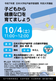 【チラシ】子どもから健康な口を育てましょう【日本大学松戸市学部連携講座】(PDF:639KB)