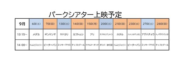 9月のパークシアター上映予定